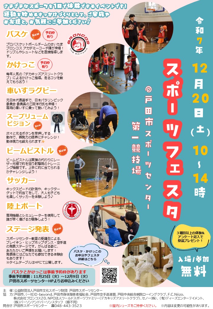 毎年人気のかけっこやサッカーに加え、車いすラグビーや陸上ボートなど、なかなか体験できない競技のブースや、ヒップホップダンス・ブレイキン・空手道のステージ発表もあります◎